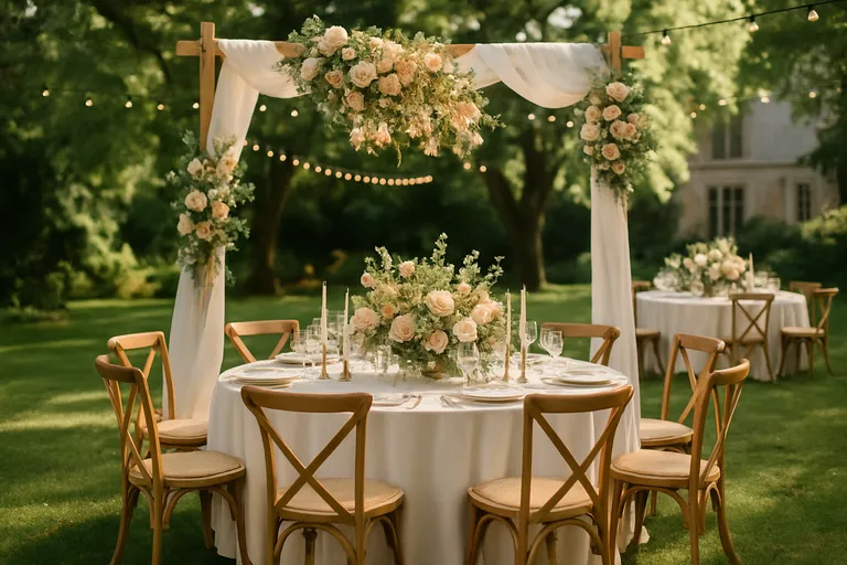 Sfeer maken, dat doe je met verlichting en bloemen! Ik herinner me nog hoe betoverend lichtslingers waren tijdens een bruiloft in een tuin in Utrecht – het leek wel een sprookje. Kaarsen in glazen houders geven een warme gloed, terwijl grote bloemarrangementen met rozen of pioenrozen direct een luxe gevoel creëren. Kies bloemen die passen bij het seizoen, dat scheelt vaak in kosten. En combineer verschillende lichtbronnen, zoals lantaarns en fairy lights, om diepte te geven aan je setting. Zo transformeer je elke locatie, of het nou een strand of een oude schuur is, tot iets magisch.